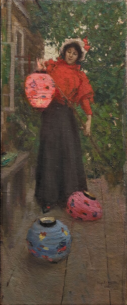 Анна Яковлевна Фидлер, ставшая моделью для картины "Бумажные фонари", стала женой художника. Несмотря на то, что ее брак (как считается) был несчастливым, она любила Коровина до самозабвения и уехала с ним в эмиграцию. Официально портретов супруги художник не писал, но мы можем увидеть ее в жанровой сценке на этом полотне.