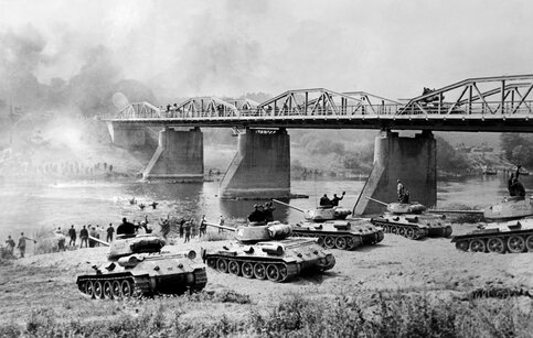 Сделанные из криво обшитых фанерой Т-44 типа "Тигры" и типа "Пантеры" по сравнению с поздними работами тех же американцев выглядели бледновато, но интересующиеся жанром, в конце концов, помнят, как у них же в "Большой красной единице" (The Big Red One) в роли немецких танков вообще снимались "Шерманы" поздних серий, крашенные в цвет фельдграу и с немецкими крестами на броне. А это, между прочим, 1980 год, то есть спустя восемь лет после "Освобождения". Но по-настоящему ломало все восприятие нечто совсем иное.