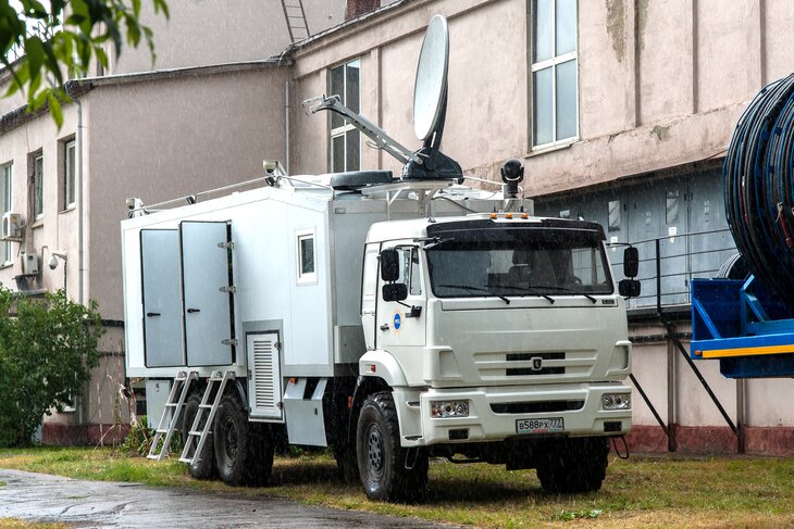 Для МОЭСК на базе КАМАЗ-43118 собрали "штаб на колесах" – мобильный центр, предназначенный для оперативного решения чрезвычайных ситуаций на энергетических объектах. Небольшой с виду грузовик на самом деле – конференц-зал на восемь человек, набор оборудования для видеоконференций, автоматизированные рабочие места с доступом ко всем информационным ресурсам "МОЭСК", антенная система VSAT для связи с любым абонентом на территории России и видеонаблюдение.