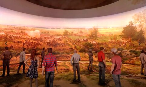 Дополнит картину интерактивный пол: изображения будут передаваться на него в синхронном режиме. Помимо панорамы, в медиацентре будут работать кафе и музейный магазин.