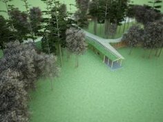 Малоэтажное здание пансионата огибает деревья, извиваясь как дракон. Проект пансионата был создан в 2007 году.