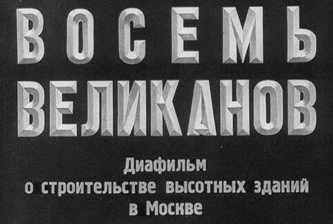 Название диафильма "Восемь великанов" для современного жителя столицы звучит неожиданно, ведь все мы знаем, что сталинских высоток в Москве семь. Но ошибки здесь нет. Первоначально в городе действительно собирались построить восемь небоскребов, причем это число должно было символизировало восемь столетий - именно столько исполнилось городу в 1947 году. При Хрущеве от восьмой высотки отказались. Ее должны были возвести в Зарядье.