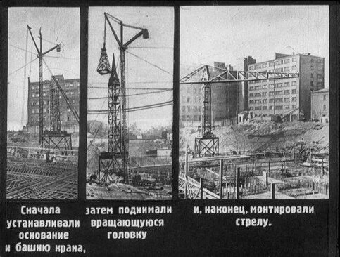 Самоподнимающиеся краны представлены здесь как некое ноу-хау, однако это не советское изобретение. Такую систему придумали в Америке еще в 1930-х годах. При строительстве высоток в Москве учли американский опыт.