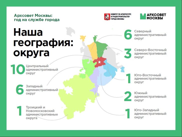 Количество городских проектов по округам. Презентация archsovet.msk.ru