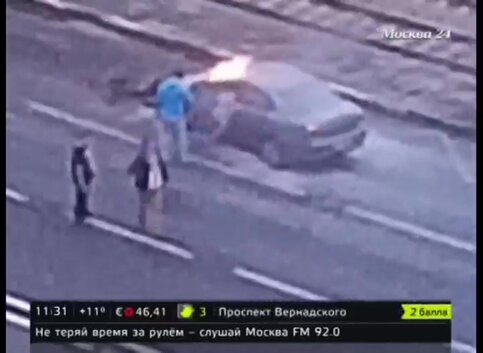 После происшествия автомобиль задымился. Огонь потушили очевидцы.