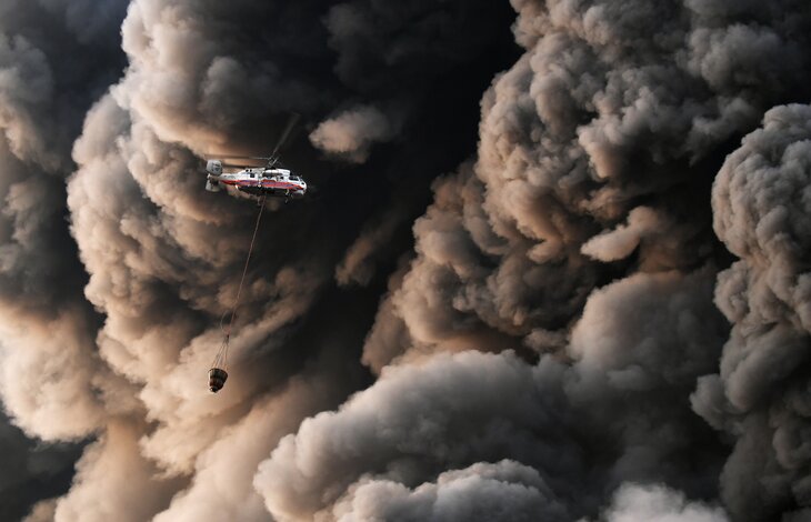 Вертолет МАЦа тушит пожар на рынке "Синдика". Фото: ТАСС/Максим Григорьев
