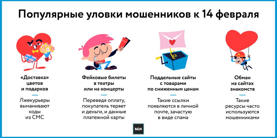 Всплеск мошеннических операций традиционно происходит перед праздниками, и такая дата, как 14 февраля, не исключение, напомнили эксперты. Какие схемы будут использовать аферисты и как обезопасить себя, разбиралась Москва 24.