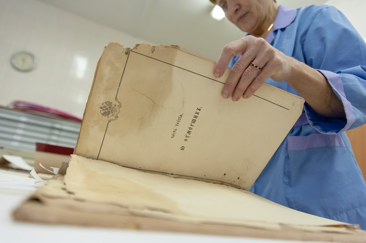 – Более 350 тысяч мы уже сделали, а план 400 тысяч. В прошлом году мы тоже сделали 400 тысяч копий, а в 2014-м и 2013-м мы было по миллиону образов в год, но тогда мы работали над более простыми документами, которые состояли из отдельных листов. Сейчас мы оцифровываем книги, а их надо открывать, перелистывать, а если листы помяты или склеились, то расправлять и так далее. Все это занимает время, идет "борьба с оригиналом", так мы называем на профессиональном жаргоне эту работу.