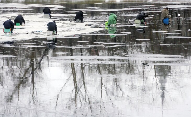 Насторожить должны лед желтоватого цвета и участки с вмерзшими камышами и водорослями. Места сильных течений также таят угрозу.