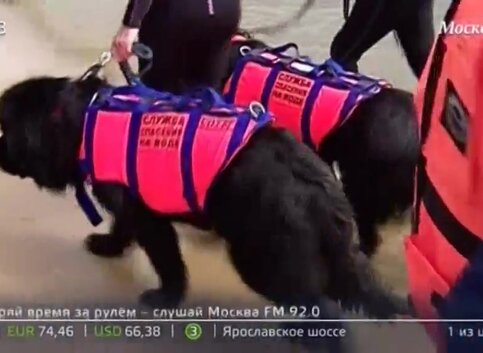 В этом году дежурить на пляжах будет вдвое больше собак, чем в прошлом. Их можно будет увидеть в Строгинской пойме, на поисково-спасательных станциях "Рублево" и "Левобережная". У всех животных есть яркий спасательный жилет с ручками, за которые может ухватиться утопающий.