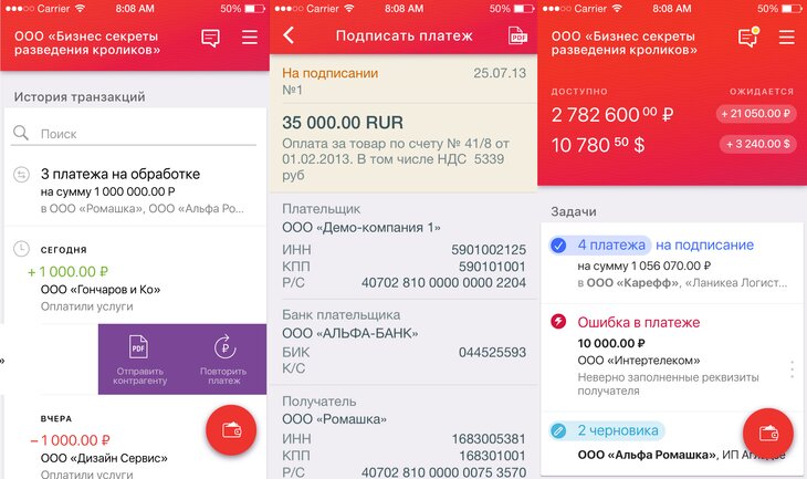 Рассмотрим, как работает мобильный банк на примере приложения "Альфа-Бизнес Мобайл".