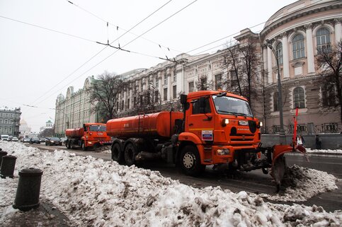 На сплошное прометание колонны специализированной техники выйдут в 23:00 и в 05:00. Тротуары и пешеходные зоны при необходимости будут посыпать мелкогравийной крошкой. В субботу утром начнутся работы по очистке крыш и выступающих элементов фасадов зданий от снега и наледи.