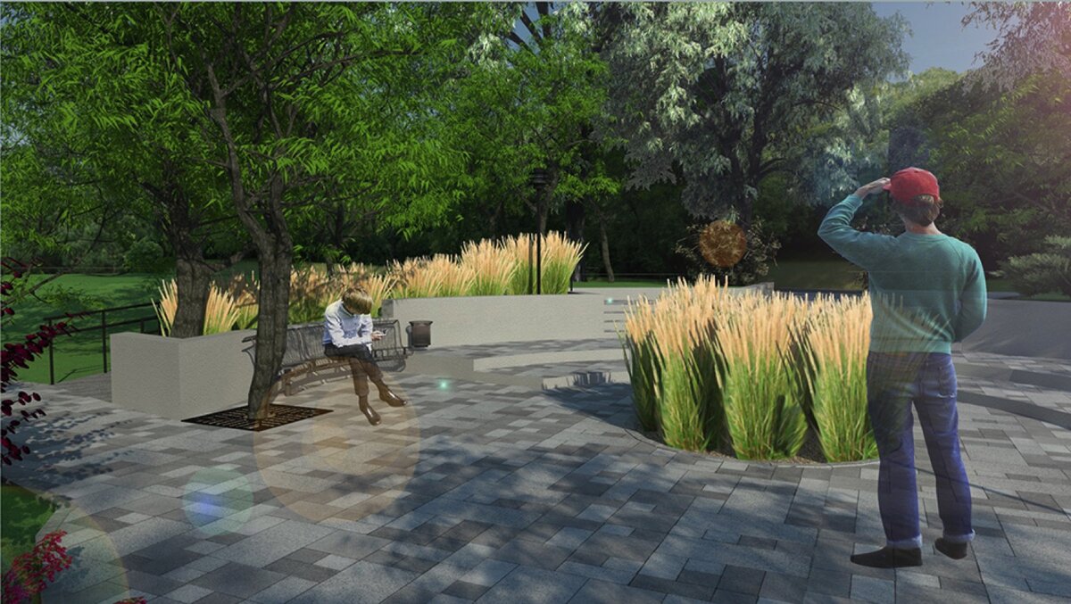 Одна из главных достопримечательностей – небольшой пруд площадью 0,35 гектара. Прогулочную дорожку вокруг него выложат новой бесшовной плиткой с гранитным напылением. Здесь организуют зону отдыху с деревянным настилом, где поставят шезлонги. На берегу пруда, на искусственном холме, есть беседка-ротонда, четыре лестницы к которой должны реконструировать.