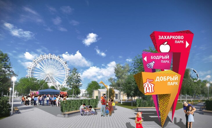 Среди новых аттракционов, по проекту, там планируется установить колесо обозрения. На центральной площади появятся малые архитектурные формы, площадка для рисунков на асфальте, информационные стенды, а вокруг старой березы планируется благоустроить место для отдыха.