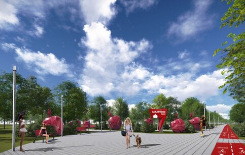 По проекту в парке "Захарково" планируют установить огромные фигуры яблок. Кроме того, здесь появятся вейк-борд станция и спортивный городок.