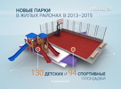 В частности, в 2015 году были завершены работы по благоустройству парка Горького, "Сокольников", парка Победы, Аршиновского парка, Сиреневого сада и парка "Кузьминки". Летом прошлого года в парках работали 95 воркаут-площадок, 240 спортплощадок, 230 пунктов проката, 91 километр велодорожек, 26 танцевальных площадок, 211 детских площадок, 13 летних кинотеатров, четыре открытых бассейна и 10 скейтпарков.