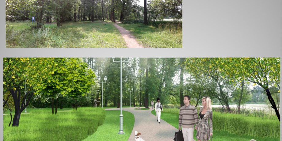 Помимо этого, на территории установят новое освещение, скамейки, урны и цветники, высадят более 300 деревьев (липу, клен, березу, дуб) и более 1,5 тысячи кустарников (рябинник, спирею и дерен).