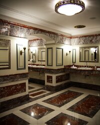 В ГУМе открылся "Исторический туалет" — музей-туалет, которым можно пользоваться по прямому назначению. Вход в музей стоит 100 рублей, а спастись от московской жары можно за 500 рублей в специальном душе. Комплект полотенец, халат, тапочки, фен и средства по уходу за телом включены в стоимость посещения душевой. На входе встречают женщины в белых передниках, а на стенах музея можно ознакомиться с исторической справкой, в которой — вся долгая история создания и воссоздания туалетной комнаты в ГУМе.