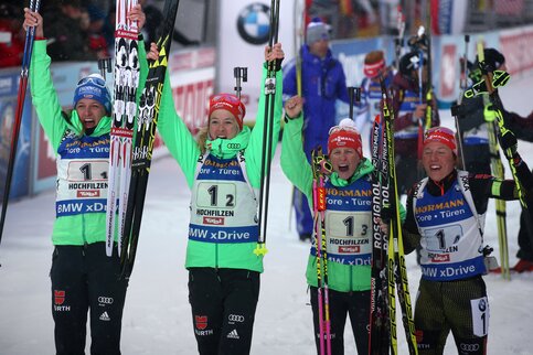 Биатлонистки сборной Германии победили в эстафете на чемпионате мира, который проходит в австрийском Хохфильцене. Немецкие биатлонистки финишировали за 1 час 11 минут 16,6 секунды, допустив девять промахов на восьми огневых рубежах.