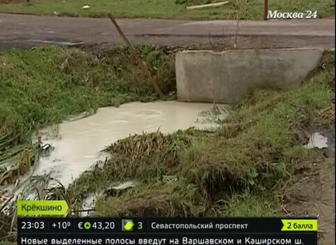 Сотрудники Мосводоканала ликвидируют последствия разлива клея в деревне Крекшино в Новой Москве, сообщает телеканал "Москва 24".