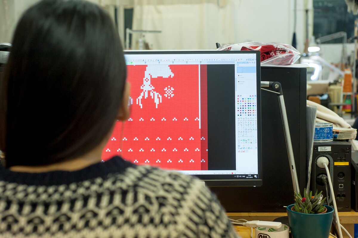– Многие пишут, мол, у вас же машина все делает, откуда такая цена. Конечно, есть такие машины, которые вяжут вещь полностью – забирай изделие с конвейера и вези в магазин, грубо говоря. Однако таким образом можно получить преимущественно однотонные и не очень качественные вещи. Про рисунок в таком случае нужно забыть – для создания даже небольшого принта приходится много времени и сил тратить на отлаживание техники. Свитер состоит из пяти частей – переда, спинки, рукавов и горла. Наши машины, как вы видите, отвязывают эти пять частей отдельно. А дальше начинается ручная работа. Нужно убирать технические нити, причем не просто отрезать, а как бы ввязывать в основное плетение изделия.