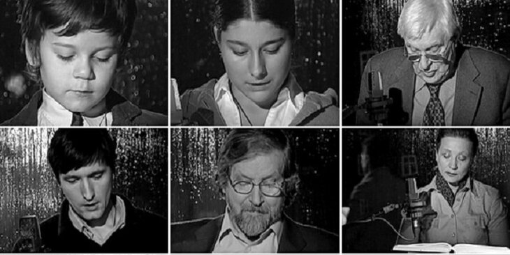 "Блокадная книга" - документальная хроника блокады, написанная Даниилом Граниным и Алесем Адамовичем. Несколько десятков петербуржцев перед камерой в телестудии читают по одному-двум отрывкам из книги.