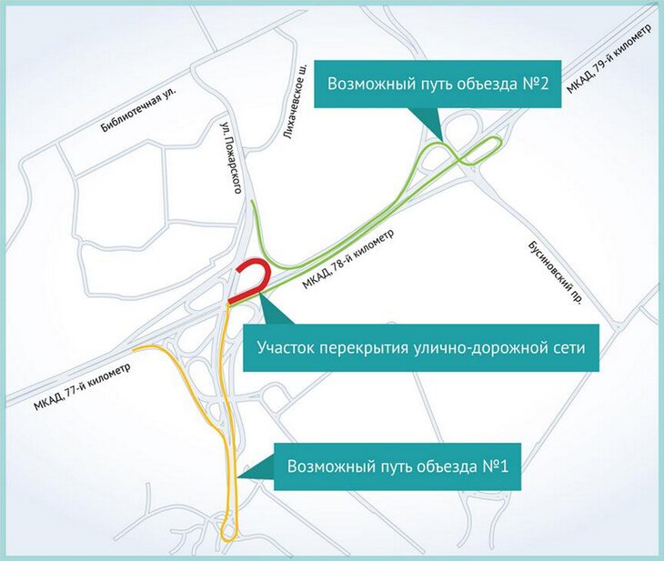 Так, будет закрыт съезд с внутренней стороны МКАД на Библиотечный проезд в строну области.