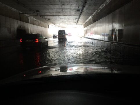 Новый тоннель на Дмитровском шоссе на севере Москвы в четверг днем оказался подтопленным, сообщает читатель M24.ru Руслан.