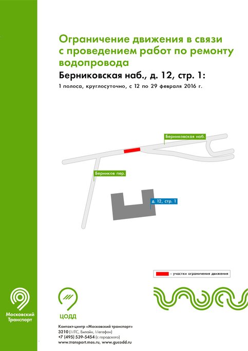 В Таганском районе с 12 по 29 февраля перекроют участок Берниковской набережной, сообщает информационный центр департамента транспорта.