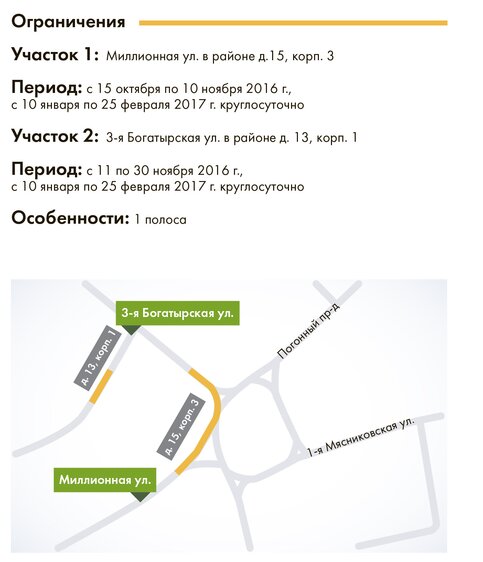 Также движением по этим участкам будет ограничено с 10 января по 25 февраля 2017 года.