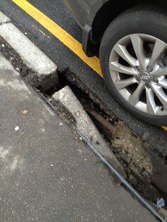 Читатель опасается, что небольшой провал грунта может увеличиться, и под угрозой попасть в провал окажутся припаркованные рядом автомобили.