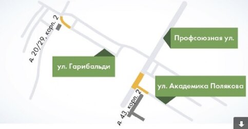 С 28 июня по 25 августа круглосуточно будет закрыта одна полоса по улице Гарибальди в районе дома № 20/29, корпус 2.