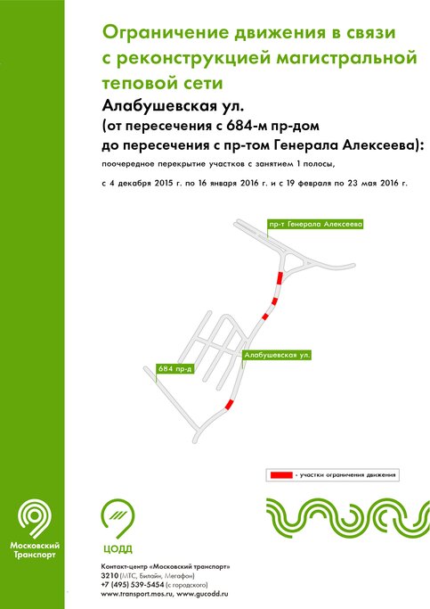 Второе ограничение движения по улице Алабушевская на данном участке запланировано на период с 19 февраля по 23 мая 2016 года.
