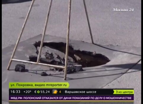 Как сообщает программа "Вести-Москва", яма площадью около 1 квадратного метра образовалась рядом с домом номер 3 по улице Покровка, недалеко от пешеходного перехода.