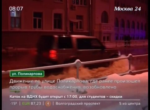 Ранее m24.ru сообщало, что в воскресенье вечером возле дома 19 на улице Поликарпова было ограничено движение из-за разрыва подземной трубы с холодной водой. Потоки хлынули на проезжую часть, в связи с чем движение транспорта по улице было закрыто.