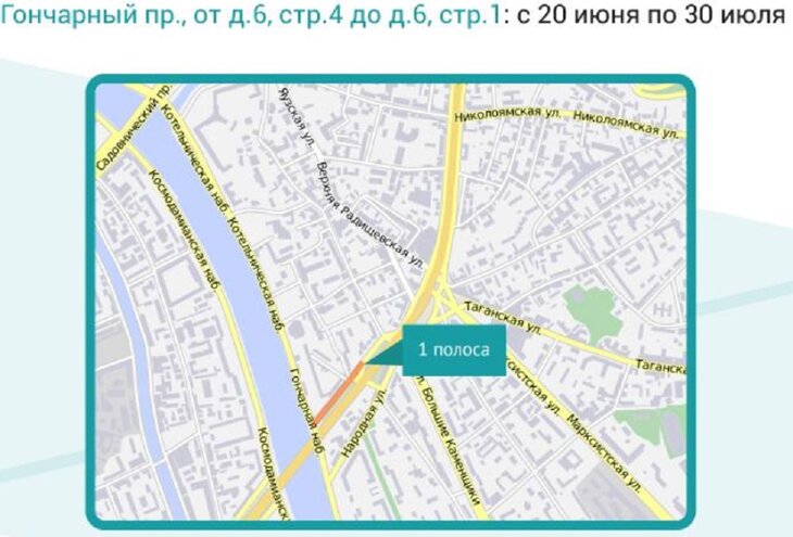 В частности, ограничения введут на участке от дома 6, строение 4 до дома 6, строение 1 по Гончарному проезду.