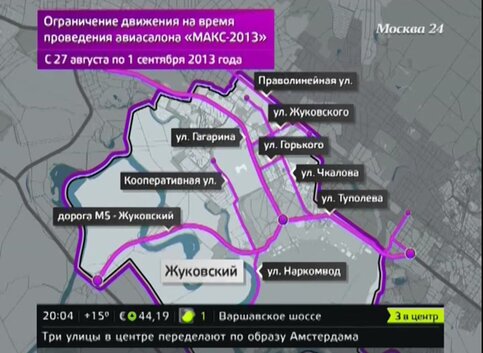 Во время работы авиасалона "МАКС" в Жуковском будет ограничен проезд к городу от трассы М-5. Также частично перекроют центр города.