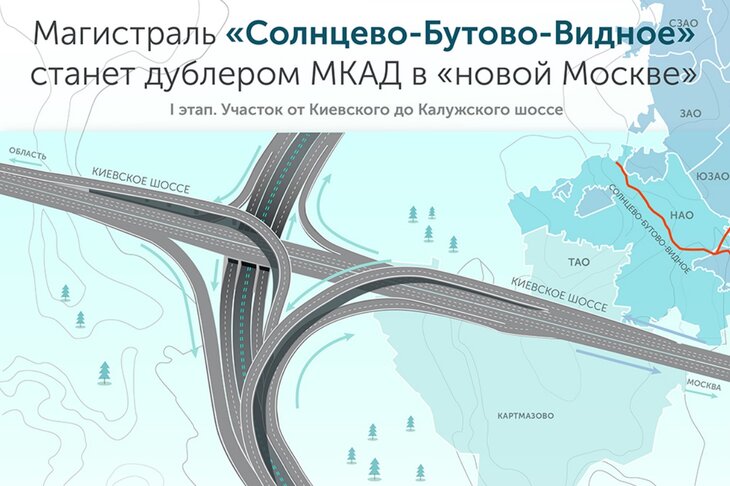 Первый участок трассы Солнцево – Бутово – Видное от Киевского до Калужского шоссе планируют закончить осенью 2018 года, сообщает пресс-служба Стройкомплекса Москвы.