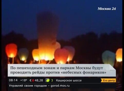 "В Москве стоит жаркая погода, а фонарики – это открытый огонь, запускать их очень опасно. В этом году жечь „небесные фонарики“ было запрещено законом. Мы обратимся в департамент торговли и услуг Москвы с просьбой повлиять на продавцов этих изделий", – сказал Беседин.