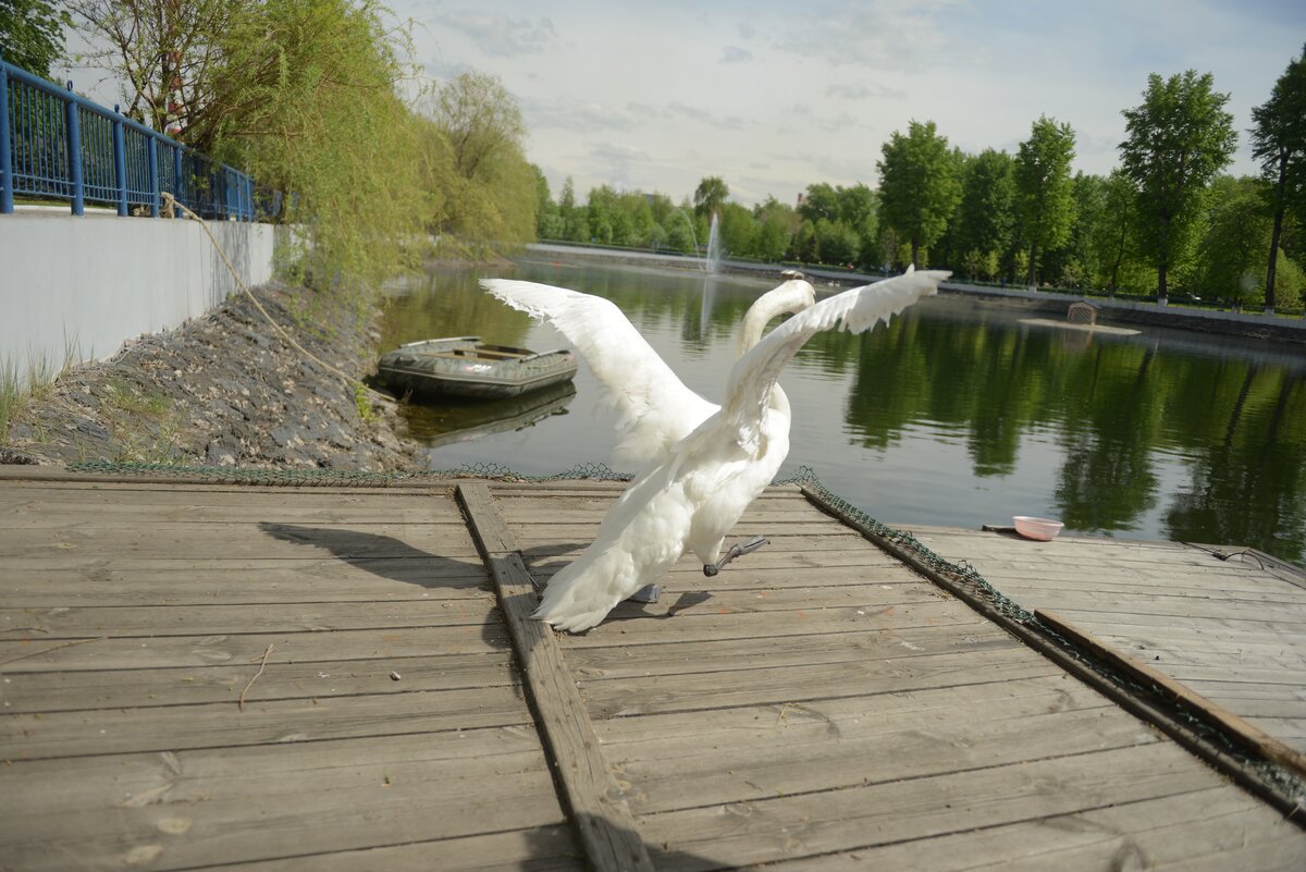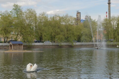 Как рассказал начальник службы по автотранспортному и хозяйственно-бытовому обслуживанию МНПЗ Дмитрий Луговской, в прошлом году в заводском хозяйстве было две пары лебедей, но одна лебедушка погибла, и в пруду остался лебедь-холостяк.