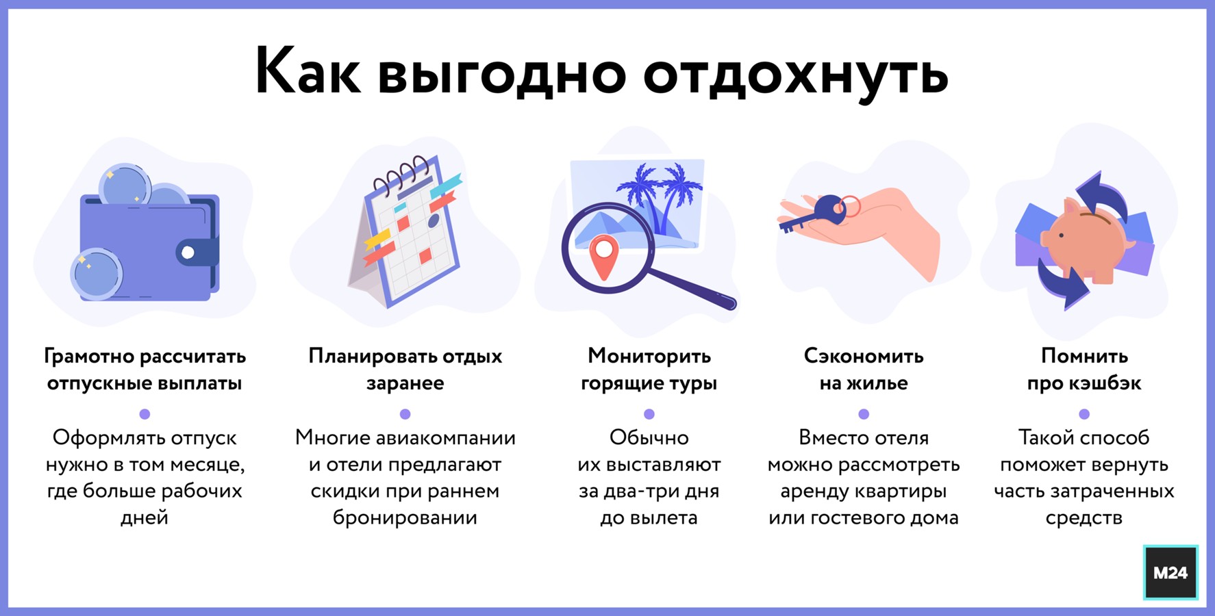 К тому же стоит отметить, что многие банки и туристические компании предлагают кэшбэк за приобретение билетов с помощью банковской карты. Такой способ поможет вернуть часть затраченных средств. Помимо этого, рекомендуется не брать кредит: лучше заранее распланировать бюджет и сделать отдых доступным для кошелька, подчеркнула Смирнова.