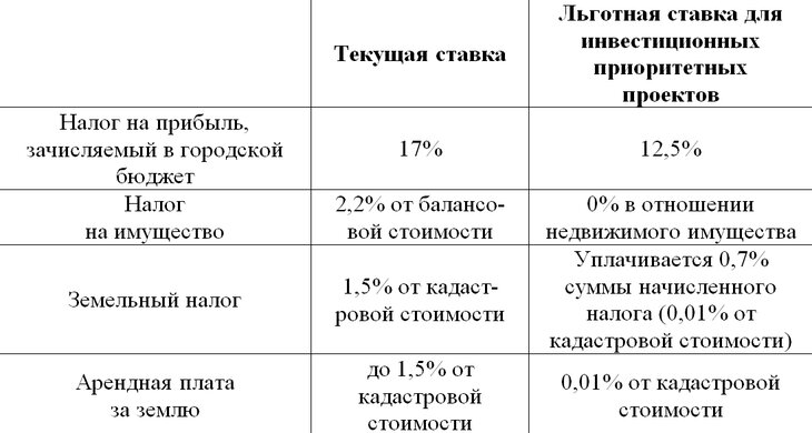 Статус в том числе дает льготы по налогу на прибыль, земельному налогу и налогу на имущество, а также снижение ставок арендной платы за землю.