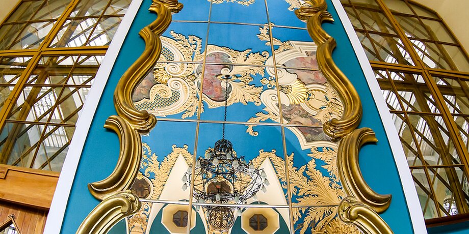 На экскурсии об истории вокзалов рассказывается по хронологии: от Ленинградского до Казанского. На каждом из них группа рассматривает интересные приметы времени, инженерные приемы и детали оформления. Но самые интересные открытия ждут публику именно в конце. Их заводят в VIP-зал ожидания Казанского вокзала. Попав в него, группа сразу же начинает фотографировать голубой плафон на потолке. Глядя на изящные линии и украшения, сложно представить, что о основе этого – железобетонный лист толщиной шесть сантиметров. И не сразу бросается в глаза некоторое несоответствие, на которое нам указывает экскурсовод Айрат Багаутдинов.