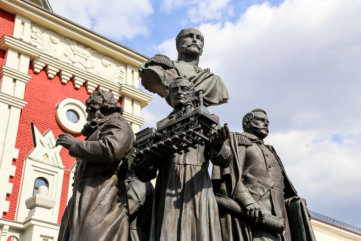 Действительно, петляя по залам ожидания и вокруг вокзалов, можно изучать историю строительства дорог. На Ленинградском висят доски в память о строителях первой крупной дороги Санкт-Петербург – Москва, и сохранилась красивая чугунная лестница середины XIX века. Рядом с Казанским можно найти памятник Мирону и Ефиму Черепановым. Эти крепостные мастера независимо от иностранных достижений и литературы придумали железнодорожную ветку и паровозы для Демидовских заводов на Урале.