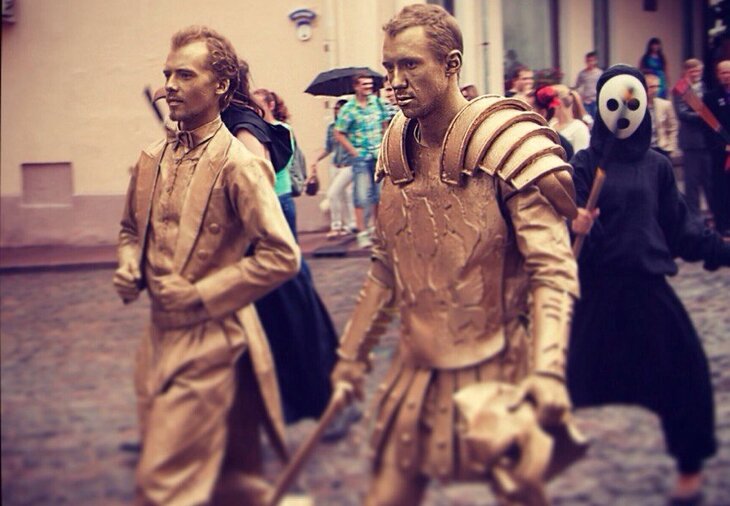 Мы начинали с самого простого – с дней рождения, праздников. Потом попробовали себя в качестве мимов. Торговые центры с энтузиазмом ангажировали нас на мероприятия. Через какое-то время один из клиентов скинул фотографию, на которой была живая скульптура.