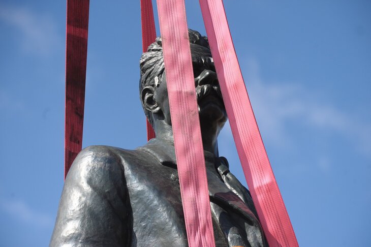 Памятник Максиму Горькому привезли на площадь Тверская Застава. Писатель, отлитый в бронзе, вернулся из парка Музеон на свое законное место. Памятник работы Веры Мухиной был установлен перед Белорусским вокзалом в 1951 году. В 2005 он временно переехал в Музеон.