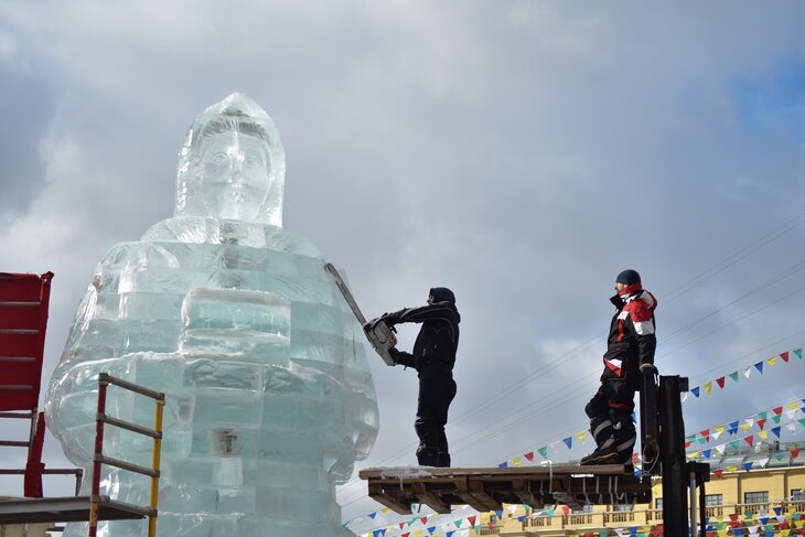 Кстати, на Манежной площади появилась восьмиметровая ледяная скульптура Масленицы, над созданием которой одновременно трудились пять художников. Чтобы изготовить ее, из Первоуральска привезли 30 тонн льда, который нарезали в горном озере. В заключительный день фестиваля пройдет интерактивное пиротехническое шоу. В течение нескольких минут ледяная скульптура будет гореть, но совсем она не растает.