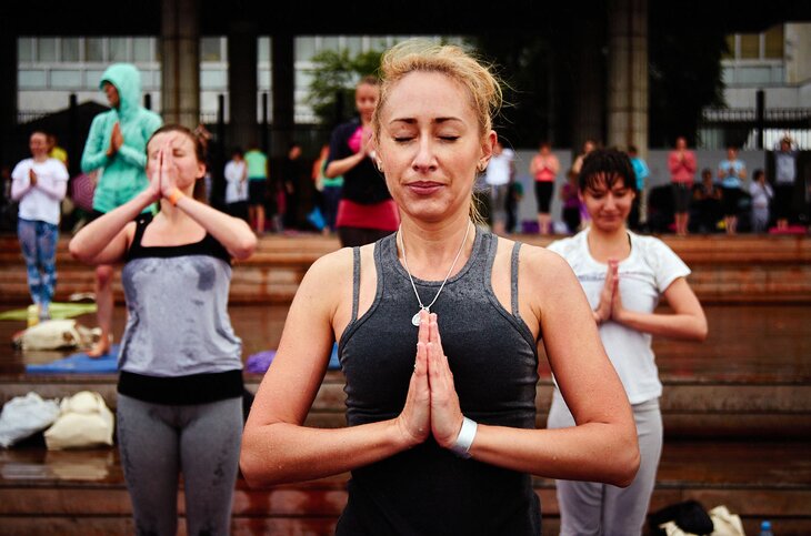 Утро может стать без иронии добрым, если посвятить его занятию хатха-йогой. Преподаватель покажет и научит основным асанам (позам) древнеиндийской техники, расскажет, как правильно дышать и зачем необходима концентрация (кстати, не только во время занятий, но и всегда).