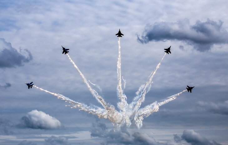 На авиабазе Кубинка в рамках Международного военно-технического форума "Армия-2017" прошли показательные выступления пилотажных групп "Турецкие звезды", "Русские витязи" и "Стрижи".