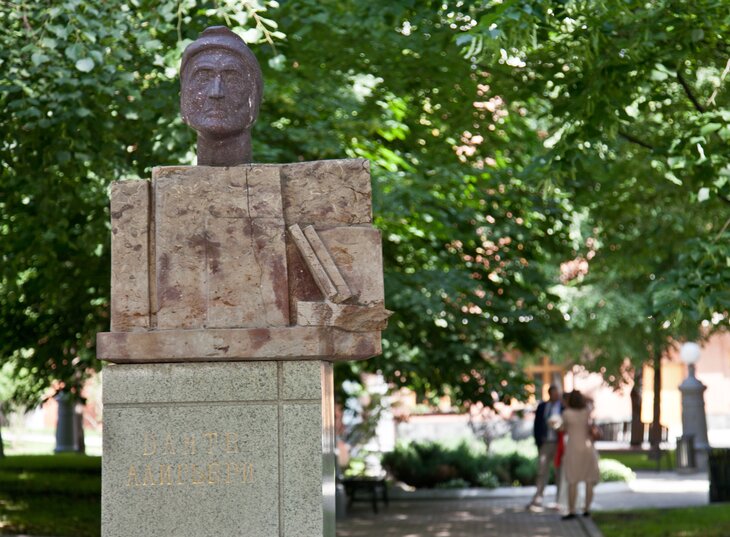 Если вы не заметили, то знайте, что в 2000 году в саду "Эрмитаж", кроме серебряного сердца, появился бюст Данте Алигьери: